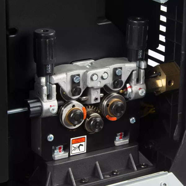- 4‑роликовый механизм подачи проволоки (Ø 0,6–1,2 мм) — стабильная подача без пробуксовки;